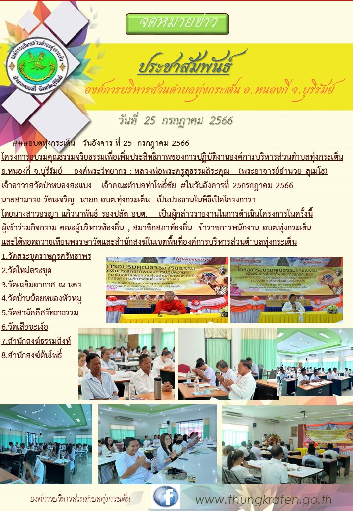 โครงการอบรมคุณธรรมจริยธรรมเพื่อเพิ่มประสิทธิภาพการปฏิบัติงาน