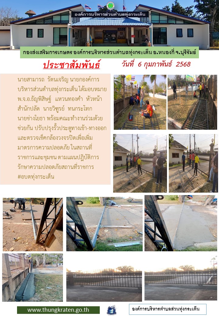 ปรับปรุงรั้วประตูทางเข้าออก และตรวจเช็คกล้องวงจรปิดเพื่อเพิ่มมาตรการความปลอดภัยในสถานที่ราชการและชุมชน