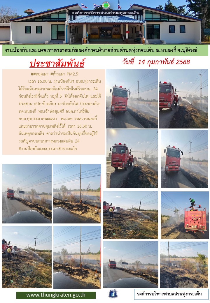 งานป้องกันและบรรเทาสาธารณภัยออกระงับเหตุไฟไหม้ริมถนนหมายเลข 24 พื้นที่หมู่ 5
