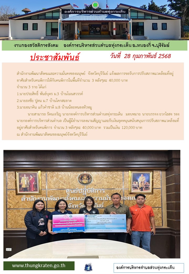 ลงนามสัญญาและรับเงินอุดหนุนสนับสนุนการปรับสภาพแวดล้อมที่อยู่อาศัยสำหรับคนพิการจากสำนักงานพัฒนาสังคมและความมั่นคงของมนุษย์