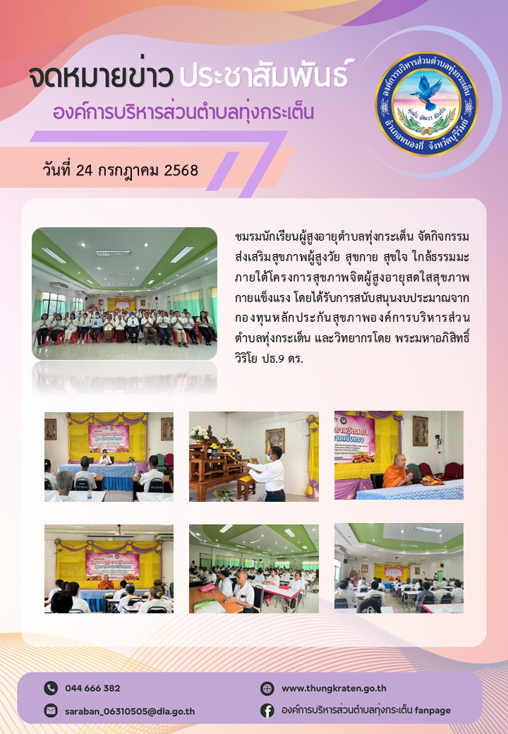 กิจกรรมส่งเสริมสุขภาพผู้สูงวัย สุขกาย สุขใจ ใกล้ธรรมมะ ภายใต้โครงการสุขภาพจิตผู้สูงอายุสดใสสุขภาพกายแข็งแรง ประจำปีงบประมาณ พ.ศ. 2568