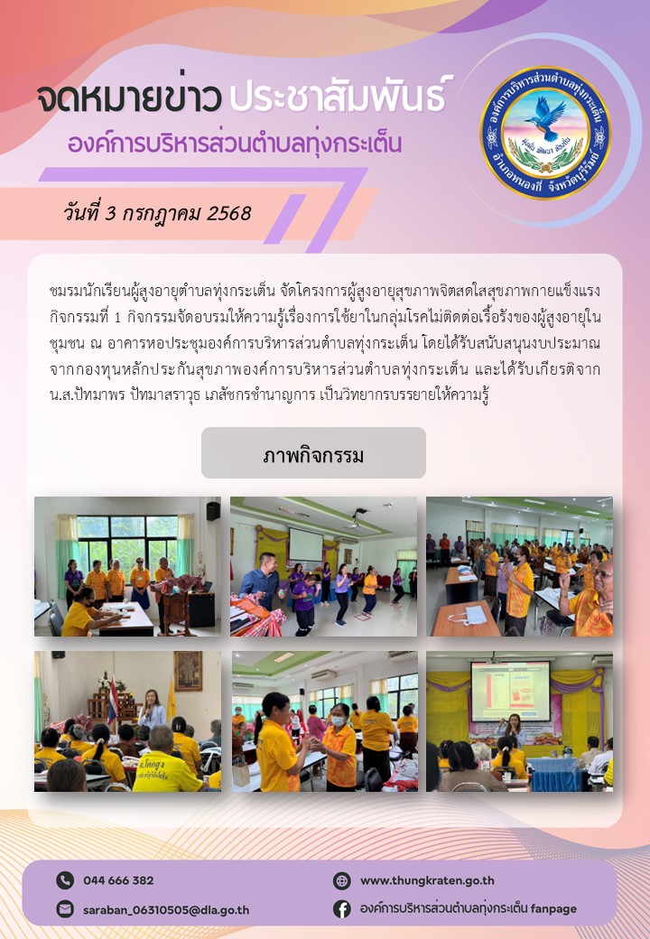 กิจกรรมอบรมให้ความรู้เรื่องการใช้ยาในกลุ่มโรคไม่ติดต่อเรื้อรังของผู้สูงอายุในชุมชน ภายใต้โครงการผู้สูงอายุสุขภาพจิตสดใสสุขภาพกายแข็งแรง ประจำปีงบประมาณ พ.ศ. 2568
