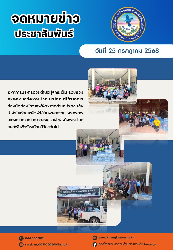 องค์การบริหารส่วนตำบลทุ่งกระเต็นรวบรวมสิ่งของเพื่อช่วยเหลือผู้ได้รับผลกระทบจากสถานการณ์ชายแดนไทย-กัมพูชา
