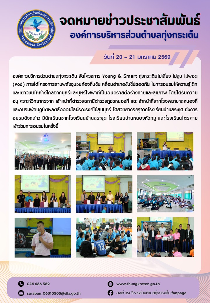 โครงการ Young & Smart ทุ่งกระเต็นไม่เสี่ยง ไม่สูบ ไม่พอด (Pod) ภายใต้โครงการสานพลังชุมชนท้องถิ่นขับเคลื่อนอำเภอขับขี่ปลอดภัย