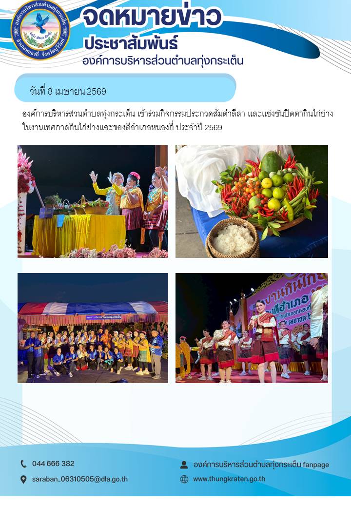 กิจกรรมประกวดส้มตำลีลา เเละเเข่งขันกินไก่ย่าง ในงานเทศกาลกินไก่ย่างและของดีอำเภอหนองกี่ ประจำปี 2569