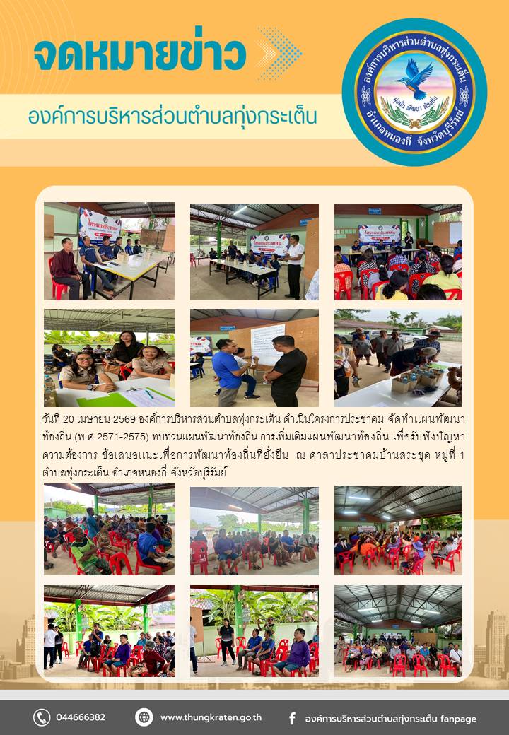 โครงการประชาคม จัดทำเเผนพัฒนาท้องถิ่น (พ.ศ.2571-2575) ทบทวนเเผนพัฒนาท้องถิ่น การเพิ่มเติมเเผนพัฒนาท้องถิ่น
