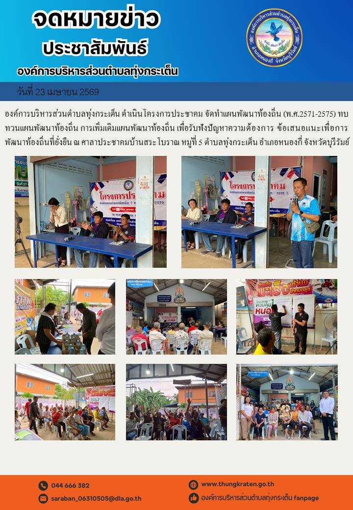ครงการประชาคม จัดทำเเผนพัฒนาท้องถิ่น (พ.ศ.2571-2575) ทบทวนเเผนพัฒนาท้องถิ่น การเพิ่มเติมเเผนพัฒนาท้องถิ่น