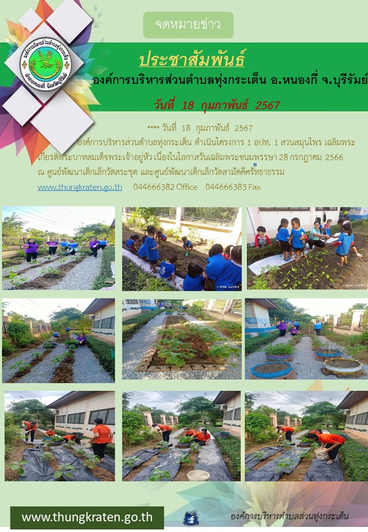 องค์การบริหารส่วนตำบลทุ่งกระเต็น ดำเนินโครงการ 1 ตำบล 1 สวนสมุนไพร
