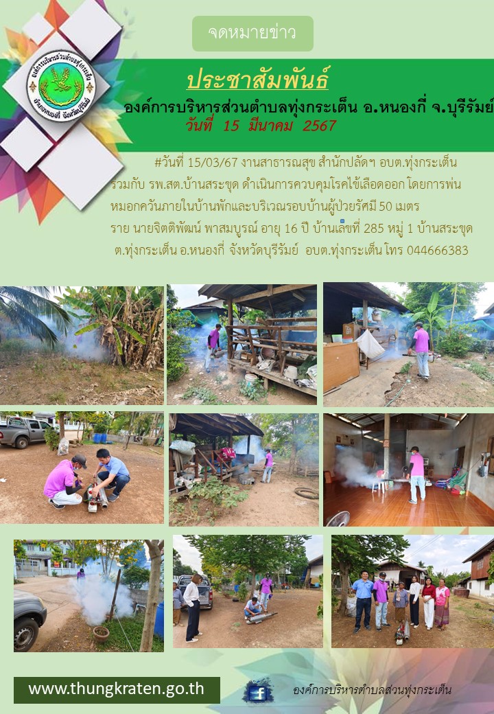 สำนักปลัดฯ อบต.ทุ่งกระเต็น ร่วมกับ รพ.สต.บ้านสระขุด ดำเนินการควบคุมโรคไข้เลือดออก โดยการพ่นหมอกควัน