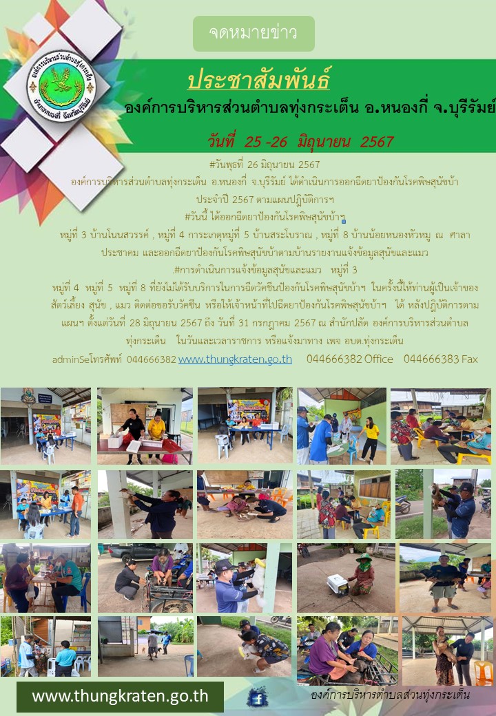 องค์การบริหารส่วนตำบลทุ่งกระเต็นออกให้บริการฉีดวัคซีนเพื่อป้องกันโรคพิษสุนัขบ้า