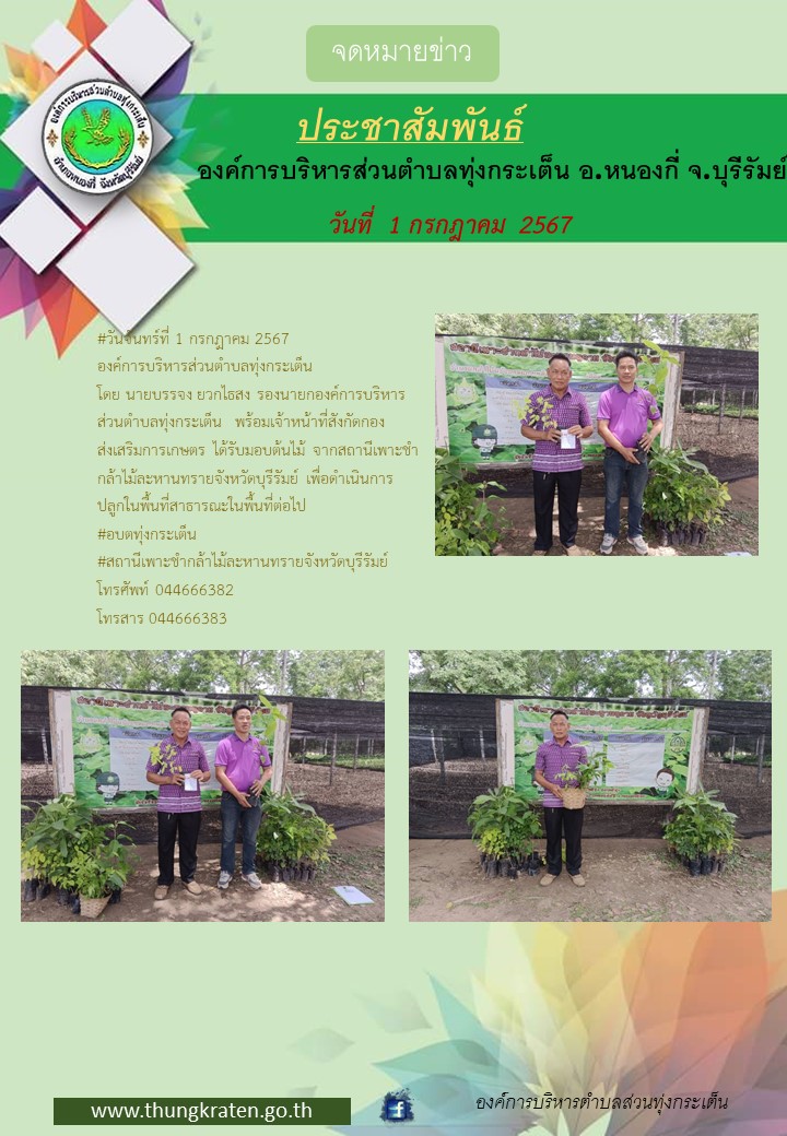 องค์การบริหารส่วนตำบลทุ่งกระเต็นรับกล้าไม้ศูนย์เพราะชำละหานทรายเพื่อปลูกในพื้นที่ป่าสาธารณะประโยชน์