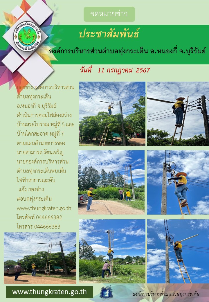 กองช่างออกให้บริการซ่อมไฟส่องสว่าง บ้านสระโบราณ หมู่ 5