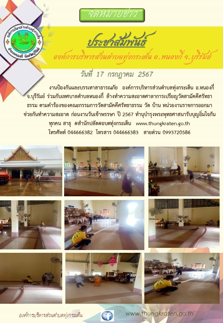 งานป้องกันออกให้บริการทำความสะอาคศาลาวัดสามัคคีศรัทธาธรรมเพื่อเตรียมพร้อมวันเข้าพรรษา