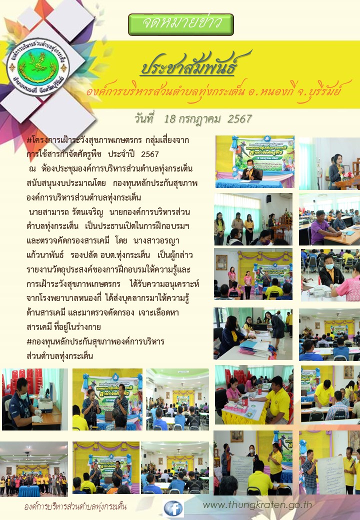 โครงการเฝ้าระวังสุขภาพเกษตรกร กลุ่มเสี่ยงจากการใช้สารกำจัดศัตรูพืช ประจำปี 2567