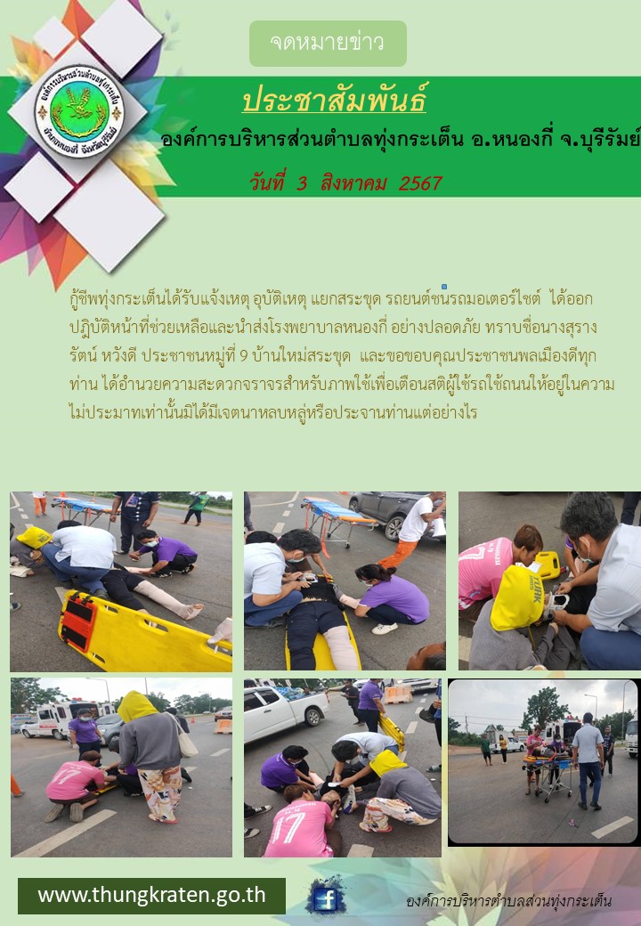 งานกู้ชีพ อบต.ทุ่งกระเต็นออกให้ช่วยเหลือผู้ประสบอุบัติเหตุบริเวณแยกสระขุด