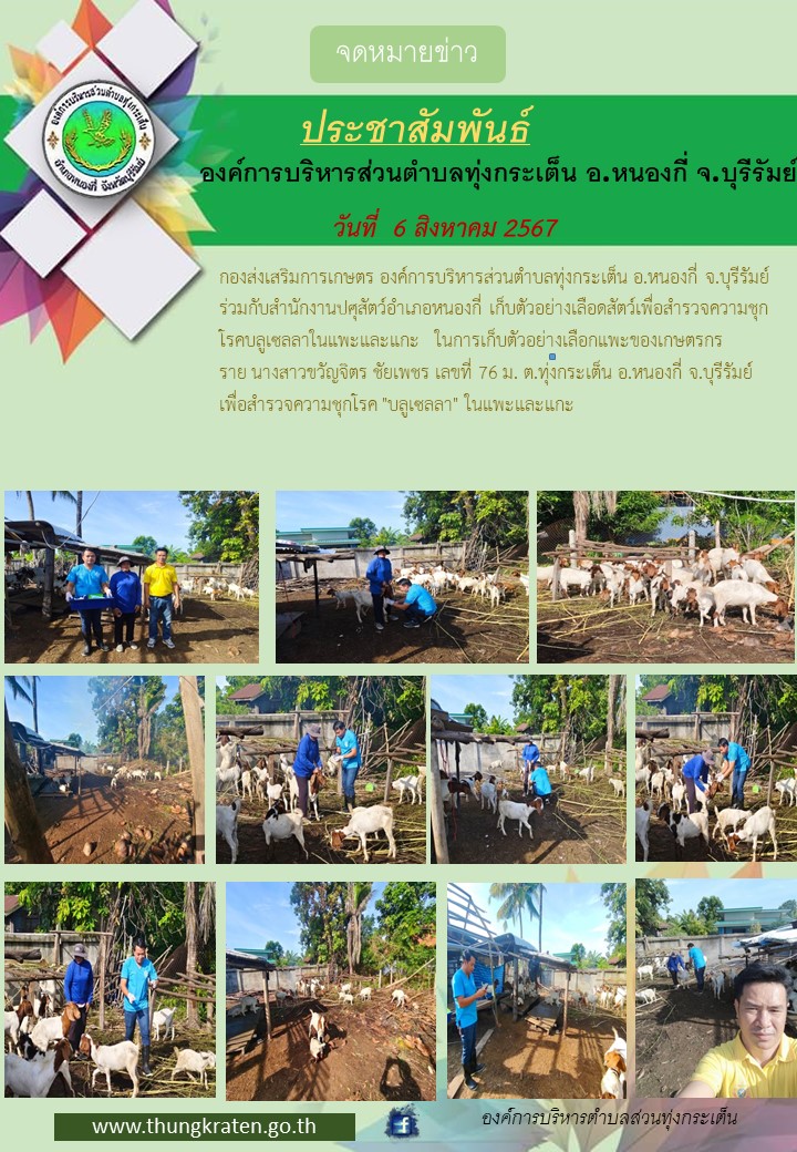 กองส่งเสริมการเกษตรร่วมกับสำนักงานปศุสัตวอำเภอหนองกี่ออกเก็บตัวอย่างเลือดสัตว์เพื่อสำรวจความซุกโรคบลูเซลล่าในแพะและแกะ