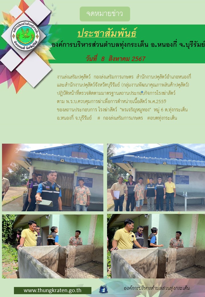 กองส่งเสริมการเกษตรร่วมกับปศุสัตว์อำเภอตรวจติดตามมาตรฐานสถานประกอบการโรงฆ่าสัตว์