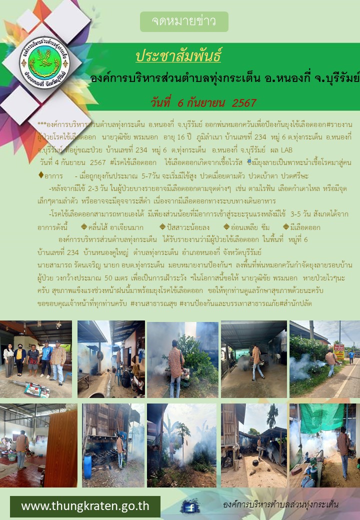 อบต.ทุ่งกระเต็นออกพ่นหมอกควัยเพื่อจำกัดลูกนำ้ยุงลาย