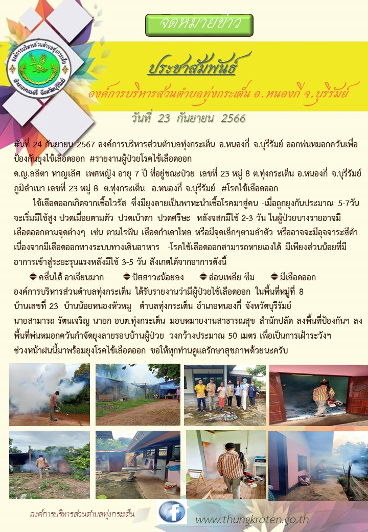 อบต.ทุ่งกระเต็นออกพ่นหมูกควันเพื่อกำจัดลูกน้ำยุงลาย หมู่ 8 ตำบลทุ่งกระเต็น