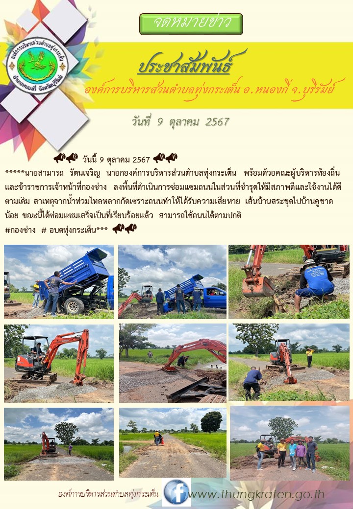 กองช่างออกดำเนินการซ่อมแซมถนนชำรุดบริเวณเส้นไปบ้านคูขาดน้อย(หม้อแตก)