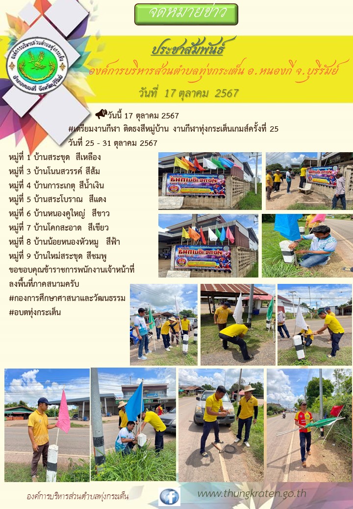 จัดเตรียมสถานที่เพื่อจัดงานแข่งขันกีฬาต้านยาเสพติดทุ่งกระเต็นเกมส์ ครั้งที่ 25