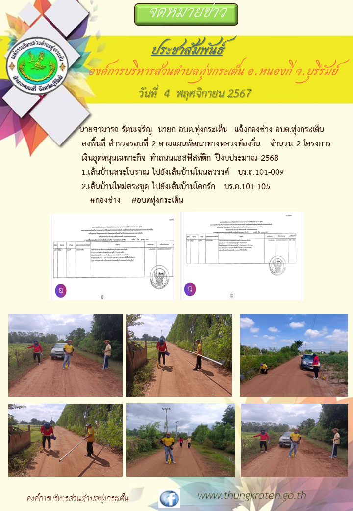กองช่างลงพื้นที่สำรวจเพื่อเตรียมความพร้อมในการดำเนินการก่อสร้างถนนตามแผนพัฒนาทางหลวงท้องถิ่น
