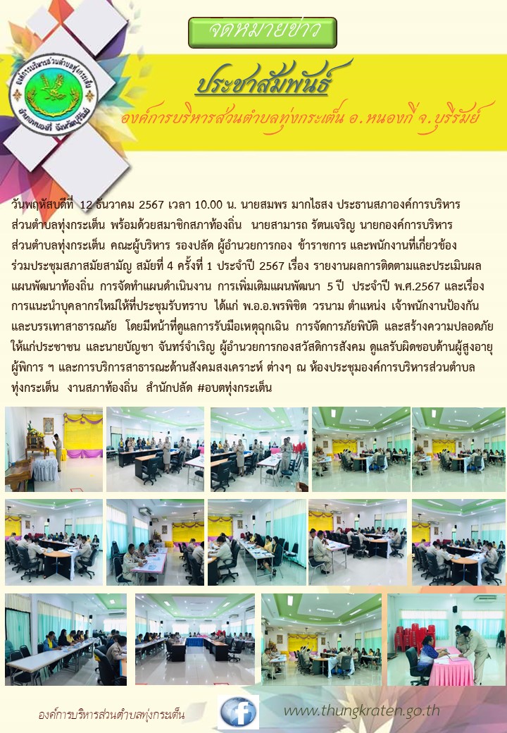 ประชุมสภาองค์การบริหารส่วนตำบลทุ่งกระเต็น สมัยที่ 4 ครั้งที่ 1 ประจำปี 2567