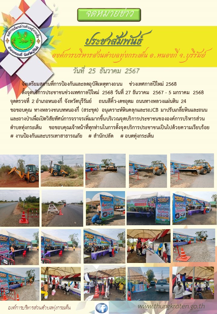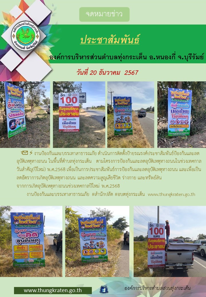 งานป้องกันและบรรเทาสาธารณภัยติดตั้งป้ายและจัดเตรียมสถานที่กิจกรรมรณรงค์ป้องกันและลดอุบัติเหตุทางถนนช่วงเทศกาลปีใหม่ 2568
