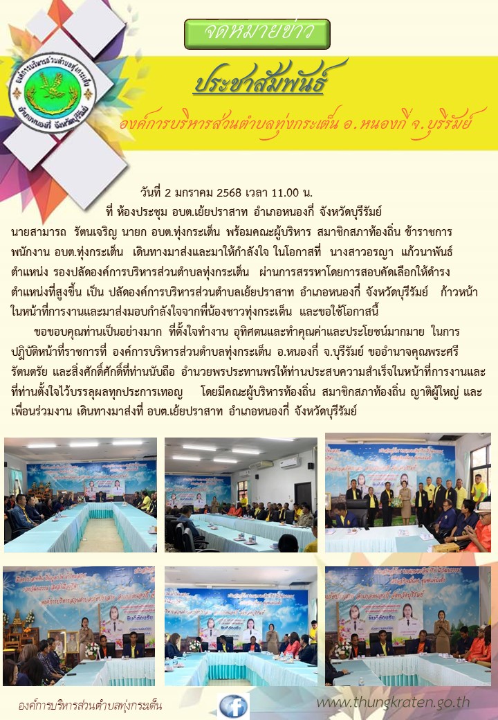 คณะผู้บริหารและพนักงานส่วนตำบลร่วมแสดงความยินดีในการผ่านสรรหาโดยการสอบคัดเลือกเพื่อดำรงตำแหน่งที่สูงขึ้นของรองปลัด อบต.ทุ่งกระเต็น