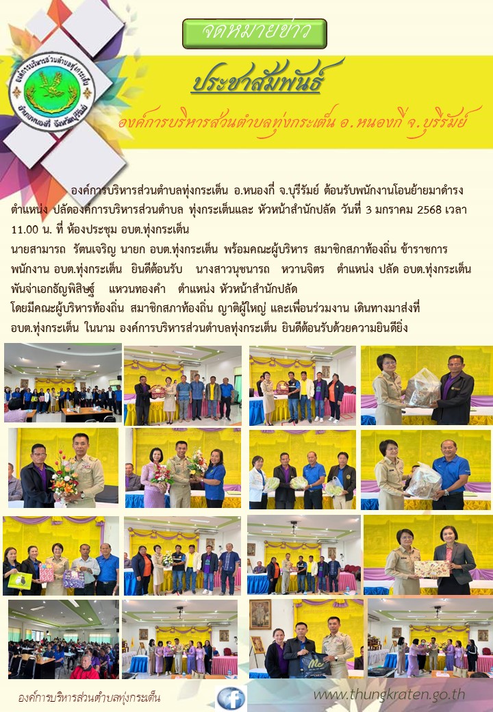 องค์การบริหารส่วนตำบลทุ่งกระเต็นต้อนรับพนักงานส่วนตำบลที่โอนย้าย จำนวน 2 ตำแหน่ง คือ ปลัดองค์การบริหารส่วนตำบลและหัวหน้าสำนักปลัด