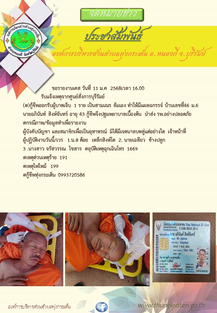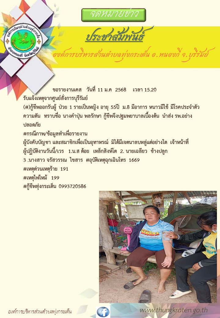 กู้ชีพออกให้บริการผู้ป่วยฉุกเฉินและนำส่งโรงพยาบาลอย่างปลอดภัย