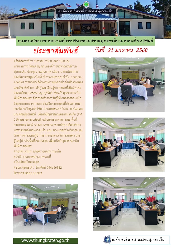 ประชุมคณะทำงานเตรียมความพร้อมจัดกิจกรรมหยุดเผาในพื้นที่การเกษตรและจัดเวทีสร้างการรับรู้และเรียนรู้การเกษตรที่เป็นมิตรกับสิ่งแวดล้อม