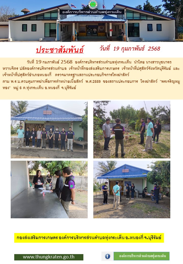 องค์การบริหารส่วนตำบลทุ่งกระเต็นรับตรวจมาตรฐานสถานประกอบการโรงฆ่าสัตว์