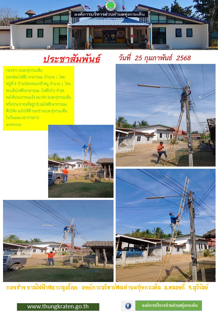 กองช่างออกให้บริการซ่อมเเซมไฟฟ้าสาธารณะ หมู่ที่ 8 บ้านหนองหัวหมู