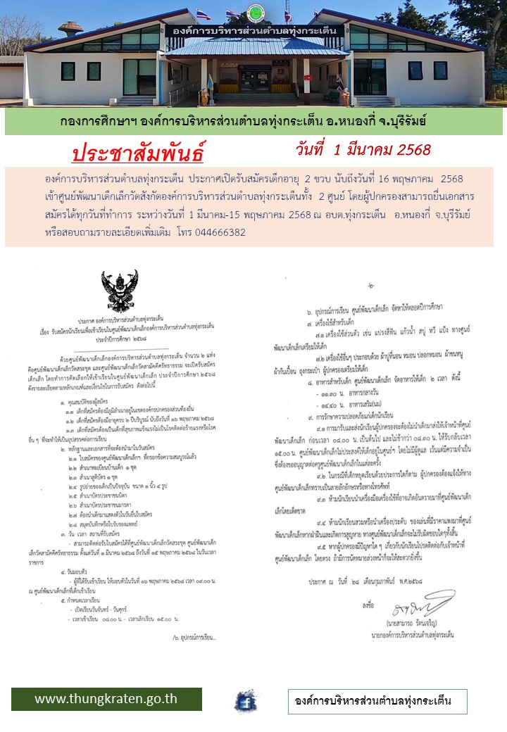 ปิดรับสมัครเด็กเข้าเรียนศูนย์พัฒนาเด็กเล็กในสังกัดประจำปีการศึกษา 2568
