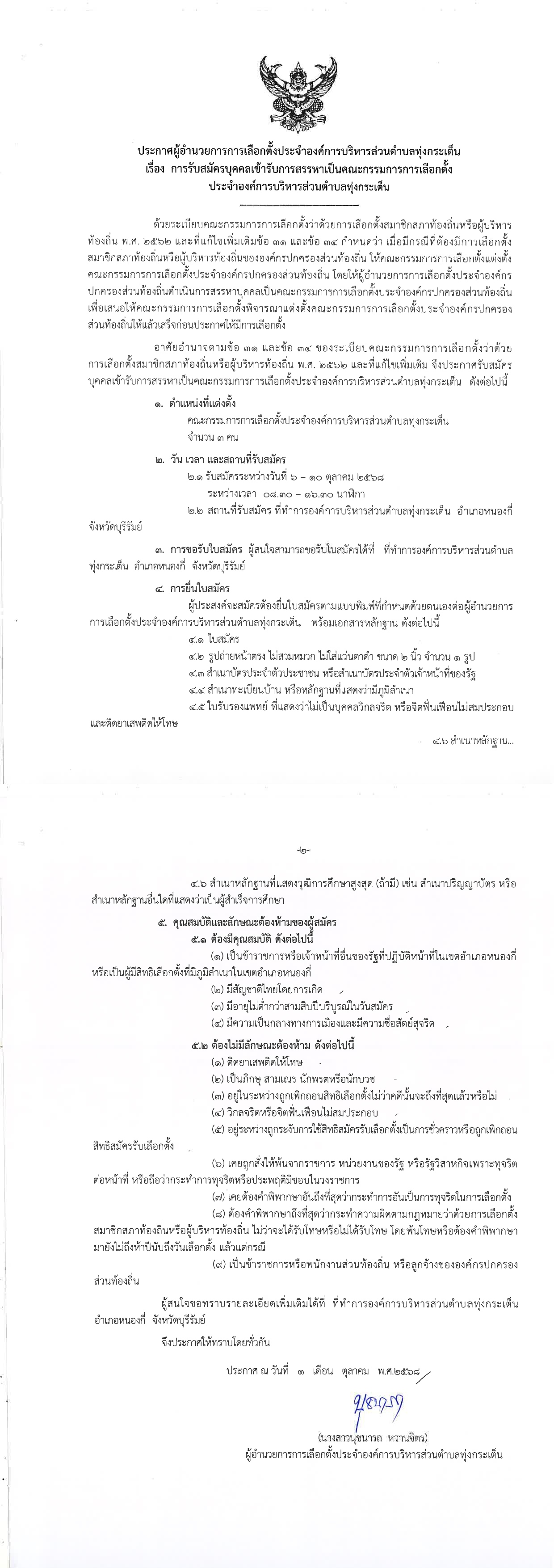ประกาศรับสมัครบุคคลเข้ารับการสรรหาเป็นคณะกรรมการการเลือกตั้งประจำองค์การบริหารส่วนตำบลทุ่งกระเต็น