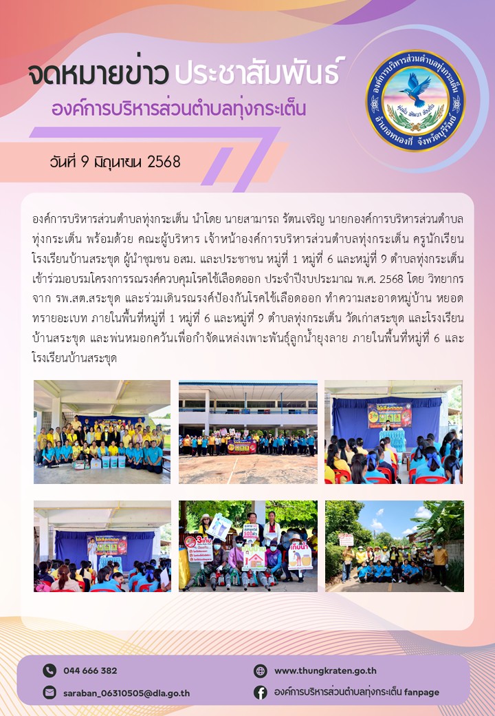 ณ อาคารหอประชุมองค์การบริหารส่วนตำบลทุ่งกระเต็น