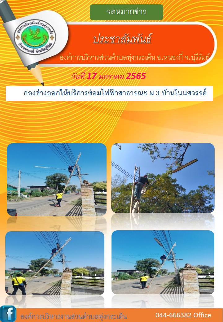 กองช่างออกให้บริการซ่อมไฟฟ้าสาธารณะในเขตตำบลทุ่งกระเต็น