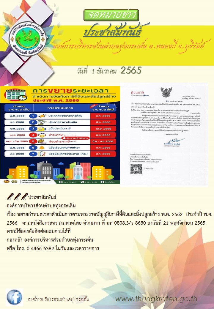 การขยายระยะเวลาดำเนินการจัดเก็บภาษีที่ดินและสิ่งปลูกสร้าง ประจำปี พ.ศ.๒๕๖๖
