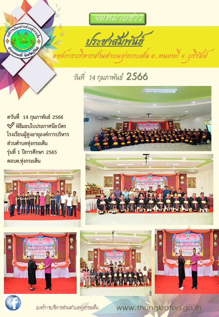 พิธีมอบใบประกาศนียบัตร โรงเรียนผู้สูงอายุองค์การบริหาร ส่วนตำบลทุ่งกระเต้น
