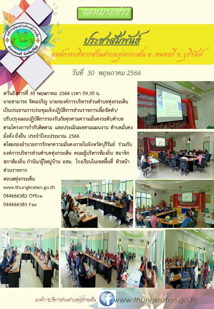 ประชุมเชิงปฏิบัติการเพื่อจัดทำแผนปฏิบัติการเพื่อรองรับภัยคุกคมระดับตำบลประจำปี 2566