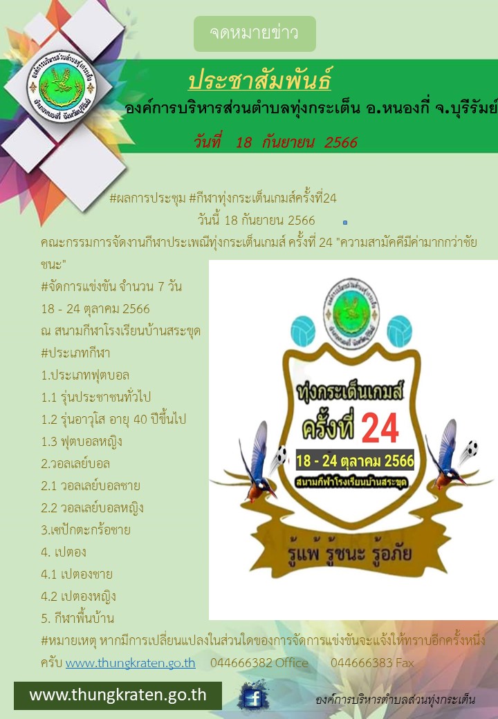 กำหนดการจัดการแข่งขันกีฬาทุ่งกระเต็นเกมส์ครั้งที่ 24