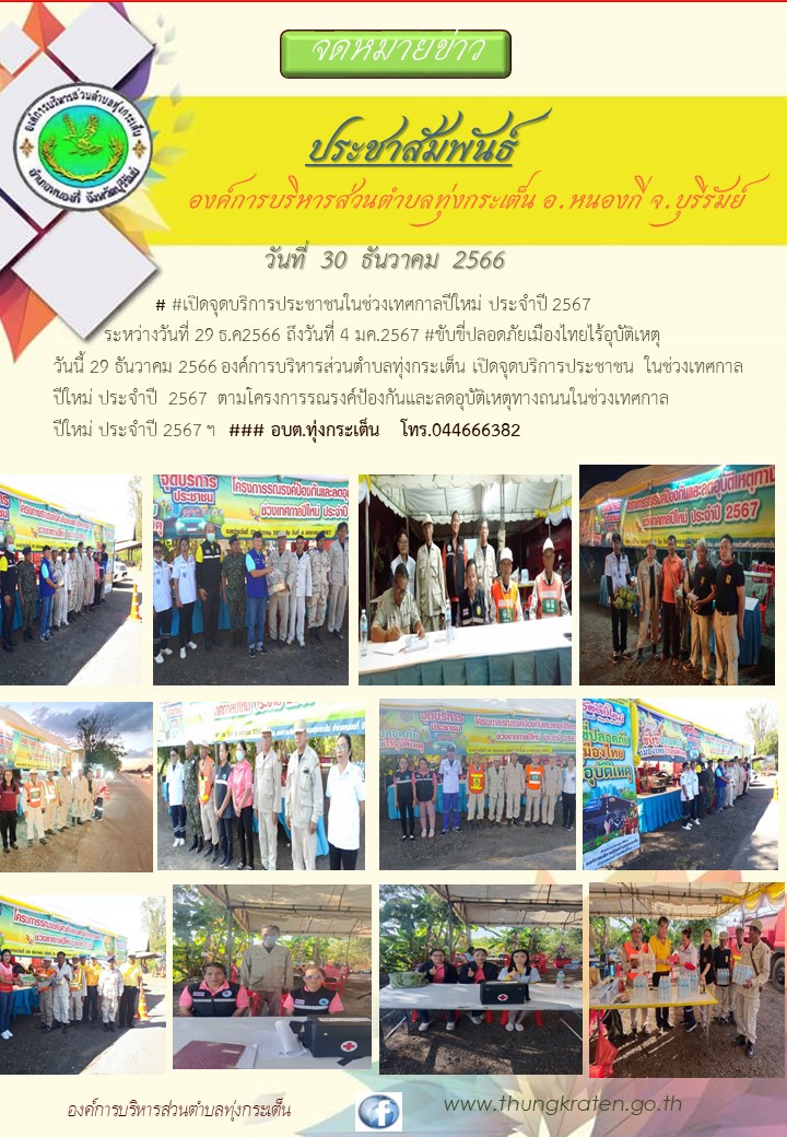 องค์การบริหารส่วนตำบลทุ่งกระเต็นให้บริการตั้งจุดบริการประชาชนช่วงเทศกาลปีใหม่ 2567