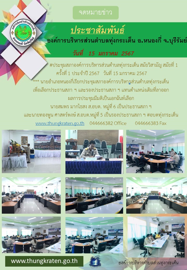 ประชุมสภาองค์การบริหารส่วนตำบลทุ่งกระเต็นเพื่อเลือกประธานสถาฯและรองประธานสภาฯ