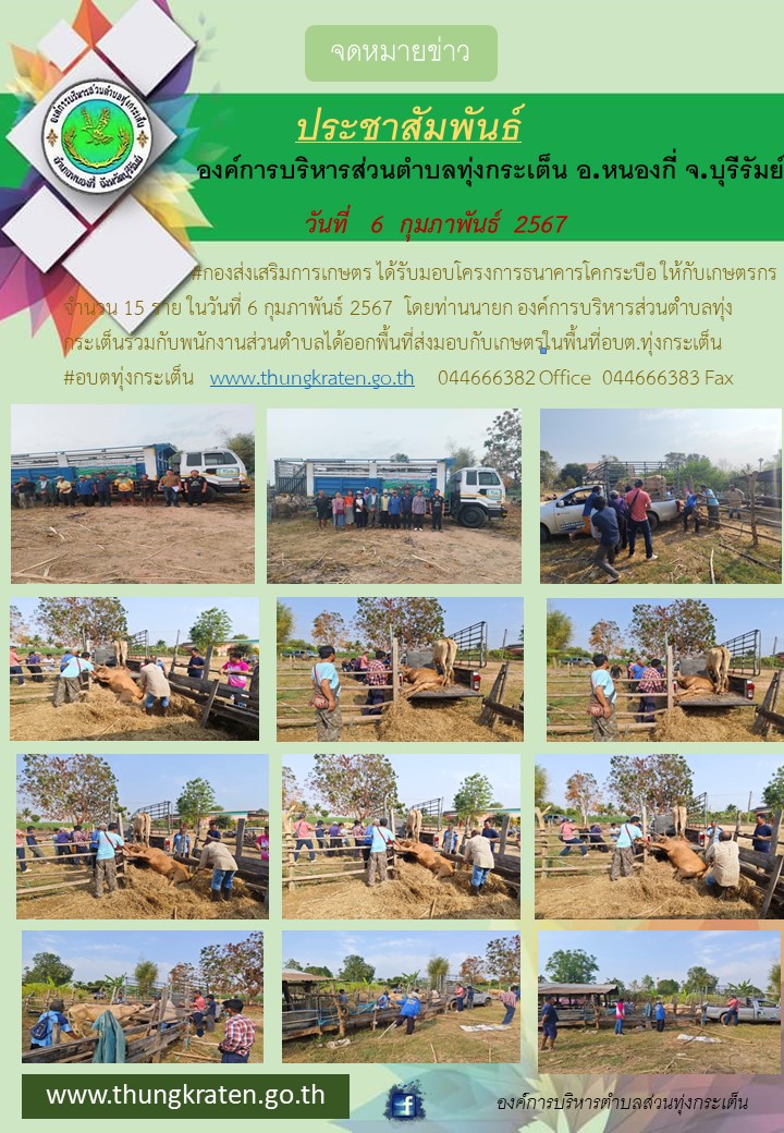 องค์การบริหารส่วนตำบลทุ่งกระเต็นได้รับการสนับสนุนจากสำนักงานปศุสัตว์อำเภอหนองกี่ ในโครงการธนาคารโค-กระบือ