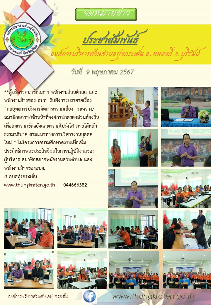 ผู้บริหารและพนักงานส่วนตำบลเข้ารับการอบรมหัวข้อกลยุทธการบริหารจัดการความเสี่ยงเพื่อลดความขัดแย้ง
