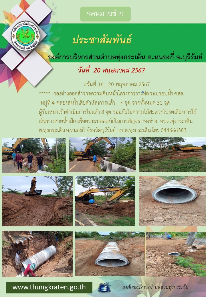 ออกช่างออกสำรวจความคืบหน้าโครงการวางท่อระบายน้ำ คสล.หมู่ 4