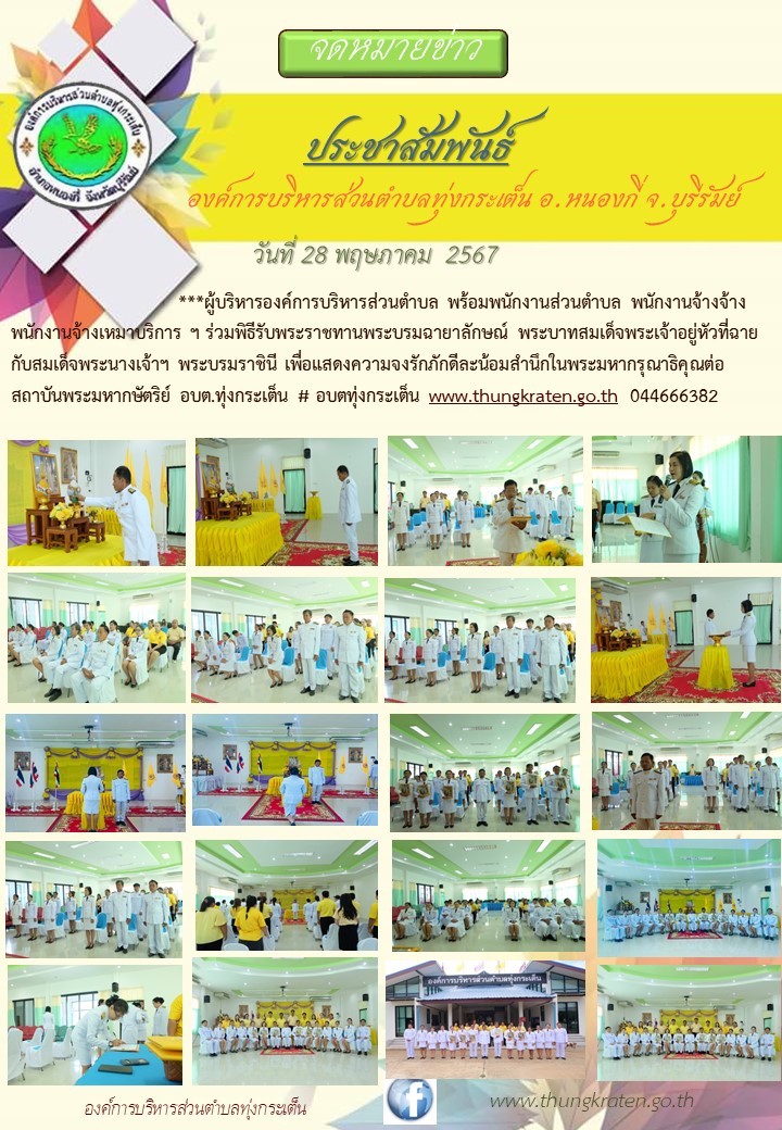 องค์การบริหารส่วนตำบลทุ่งกระเต็นจัดพิธีพระราชทานพระบรมฉายาลักษณ์พระบาทสมเด็จพระเจ้าอยู่หัว